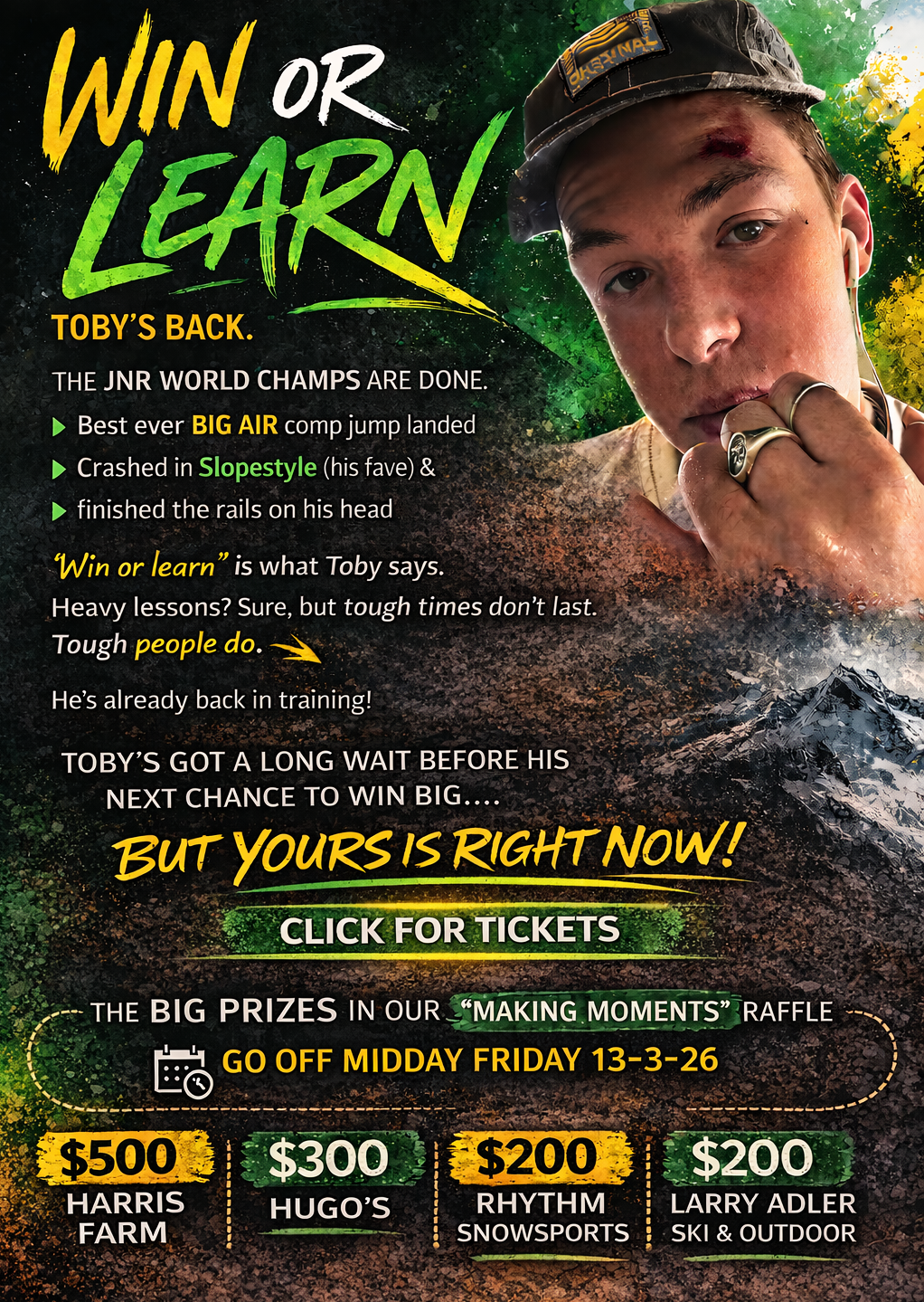 If you like to win prizes yourself, there are $1200 worth of Gift cards available in our raffle. $500 Harris Farm, $300 Hugos Manly, $200 Rhythm Snowsports & $200 Larry Adler. It’s a great way to support and win. Follow this link to get your tickets: